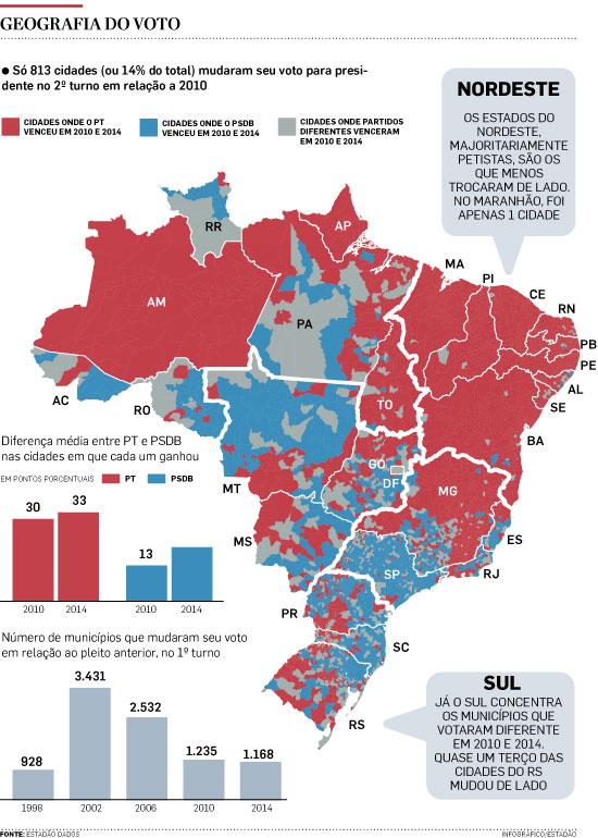 Quatro de cada 5 municípios votaram no mesmo partido da eleição de 2010