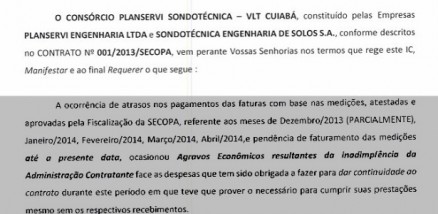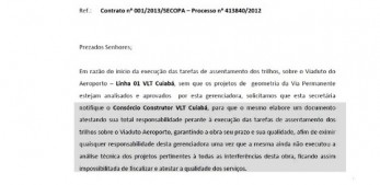 encomendou, no próximo dia 9. Já o Consórcio VLT Cuiabá não se pronunciou.